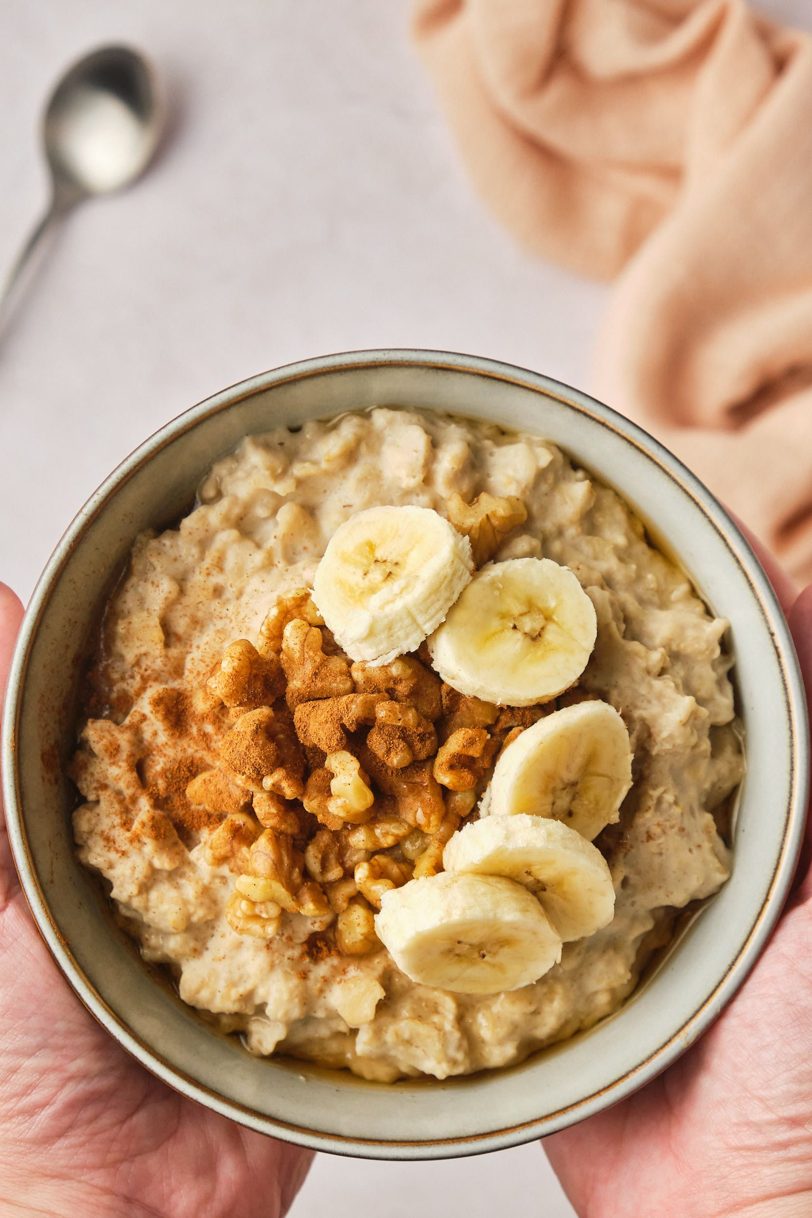 Banana nut: Stir some ground cinnamon into the oatmeal, then top with sliced bananas, walnuts and a drizzle of maple syrup.