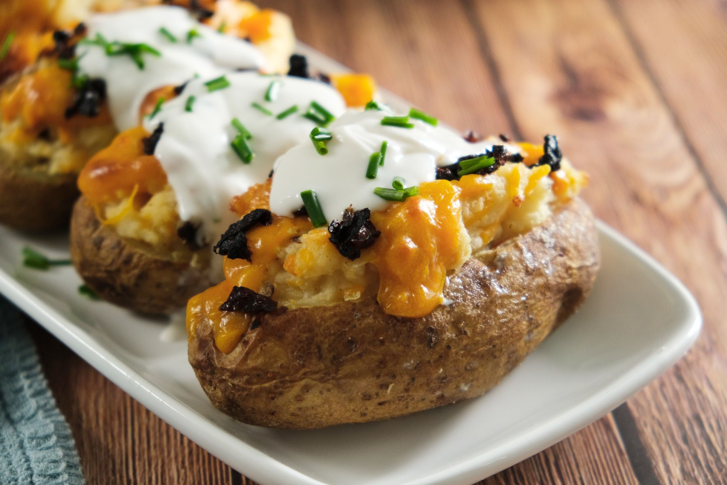 What size potatoes should I use? This recipe is made for four half-pound Russet potatoes. I've found that's a pretty good size, as smaller potatoes may be harder to scoop and refill, but larger potatoes may be too much for one person to eat.