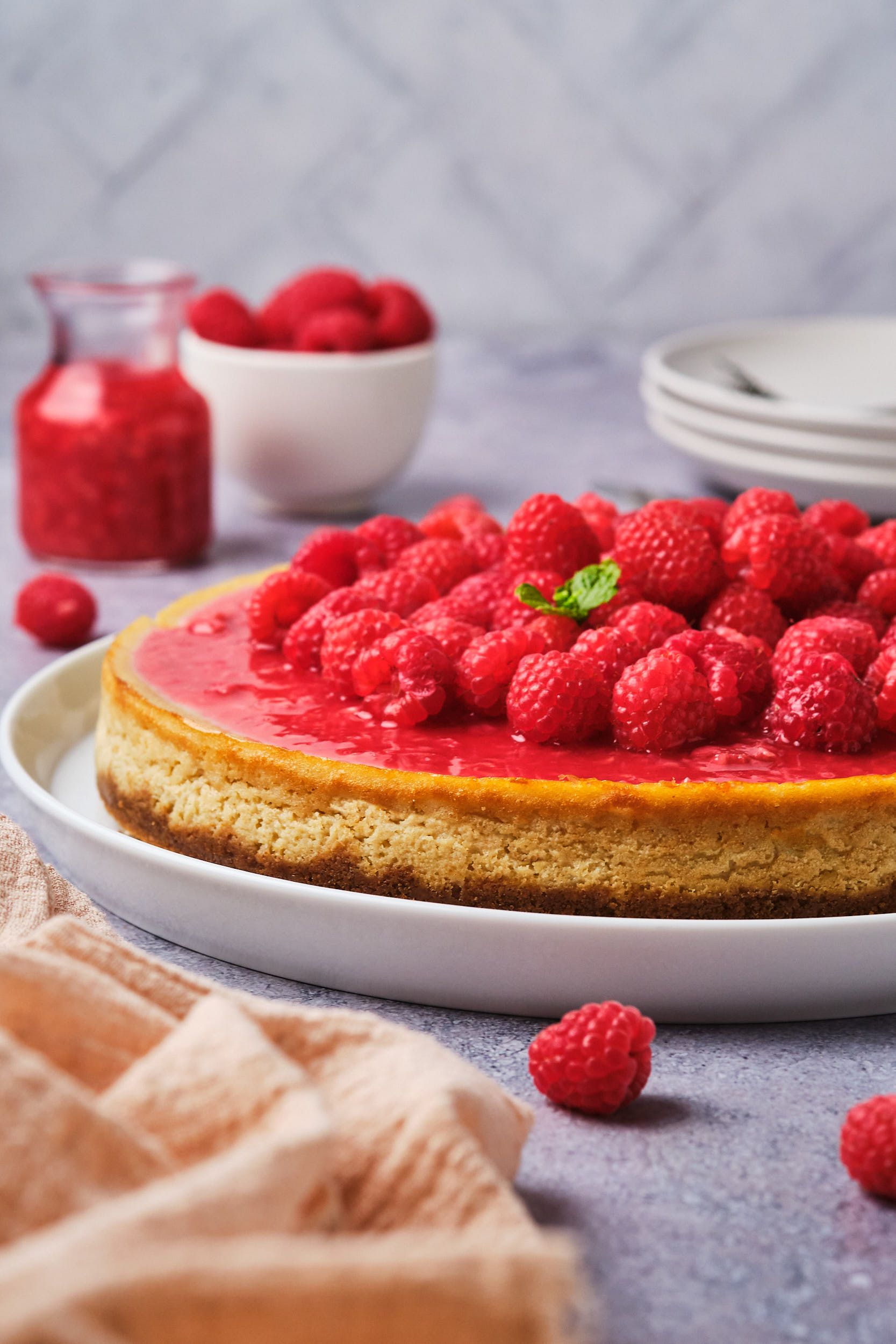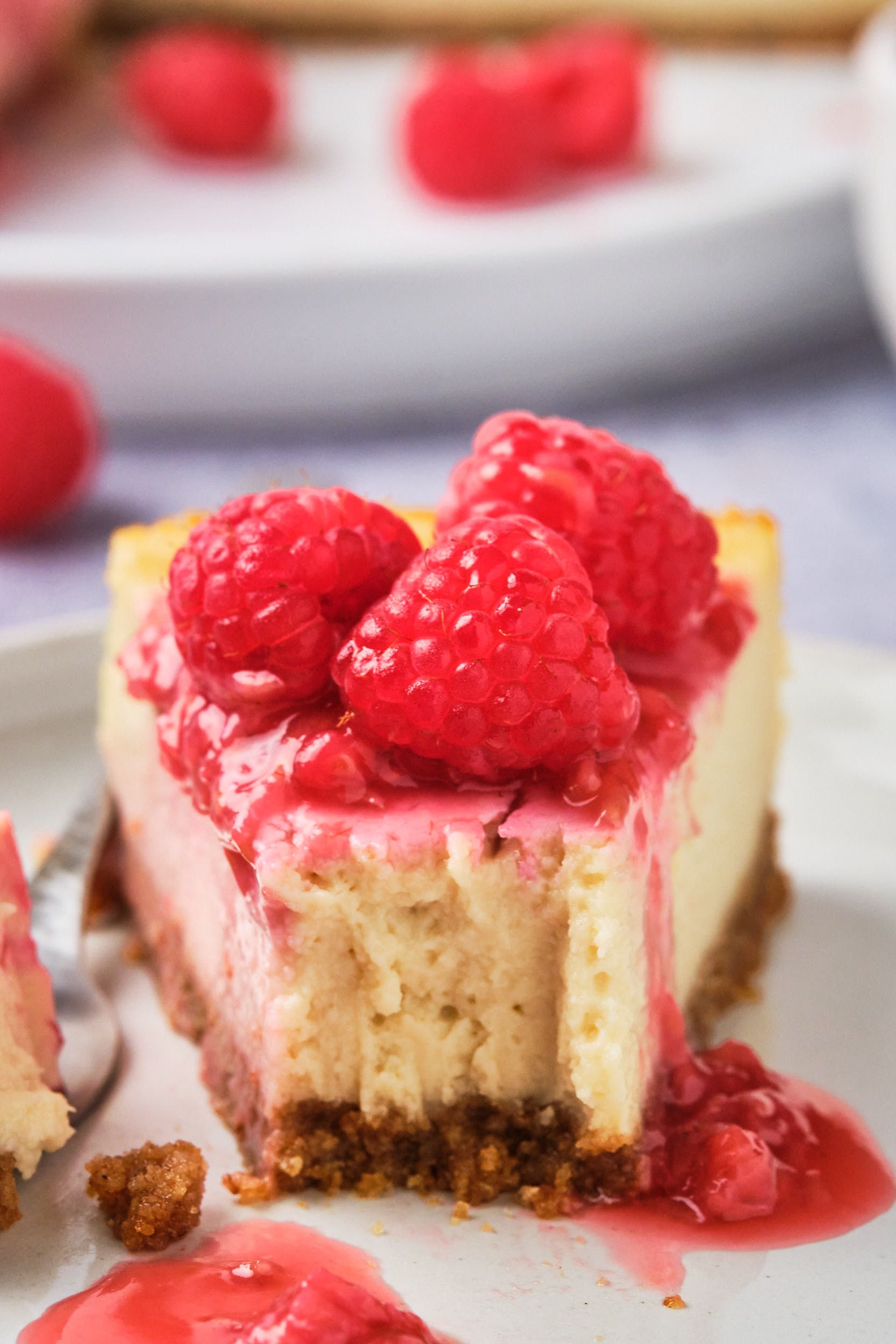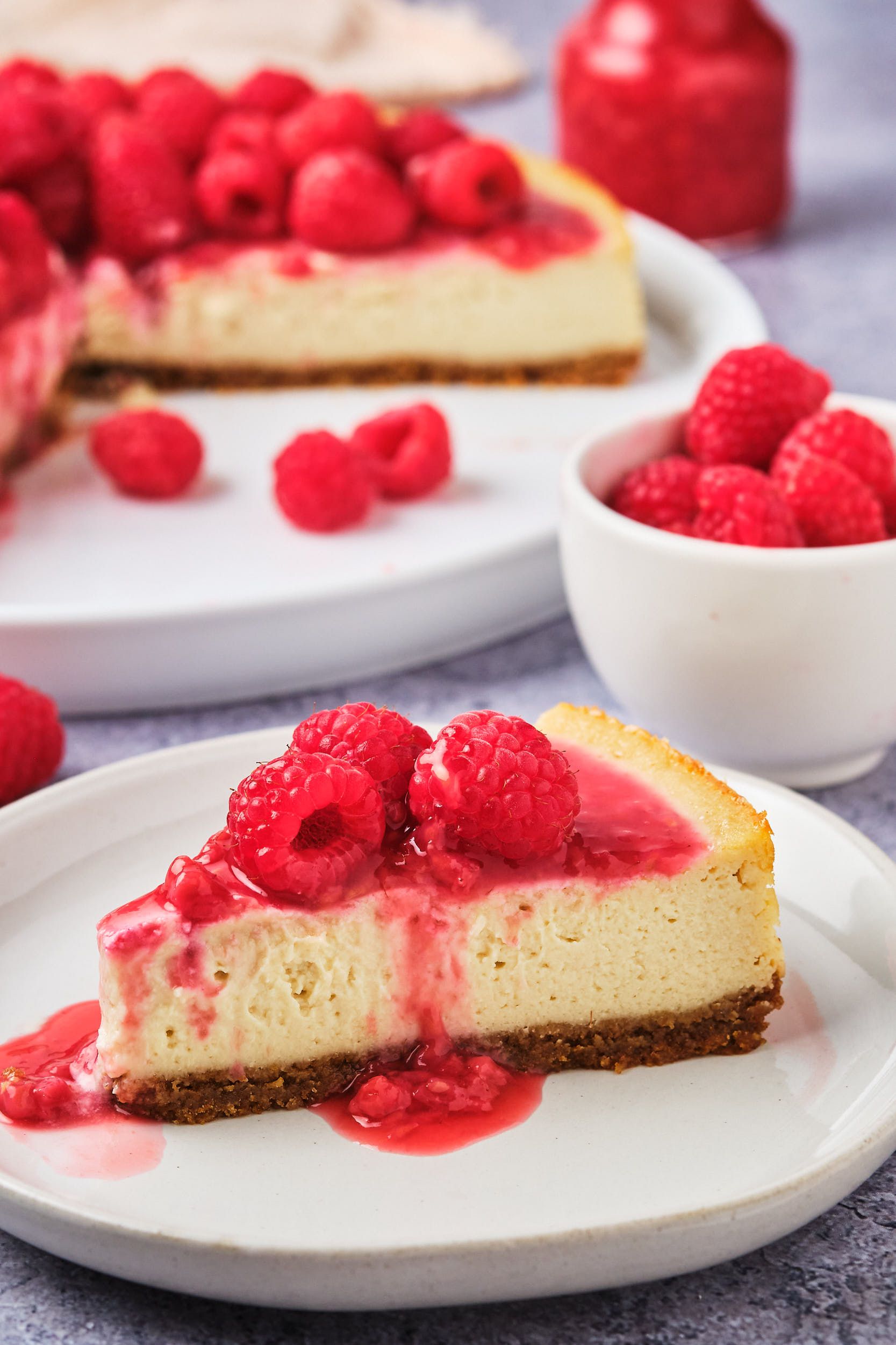 I recommend storing the cheesecake separately from its toppings, otherwise the toppings could drip and soften the crust or soak into the cheesecake. Cover the cheesecake or place slices in an airtight container or storage bag, then refrigerate for up to 5 days. The berry compote can also be refrigerated in an airtight container.