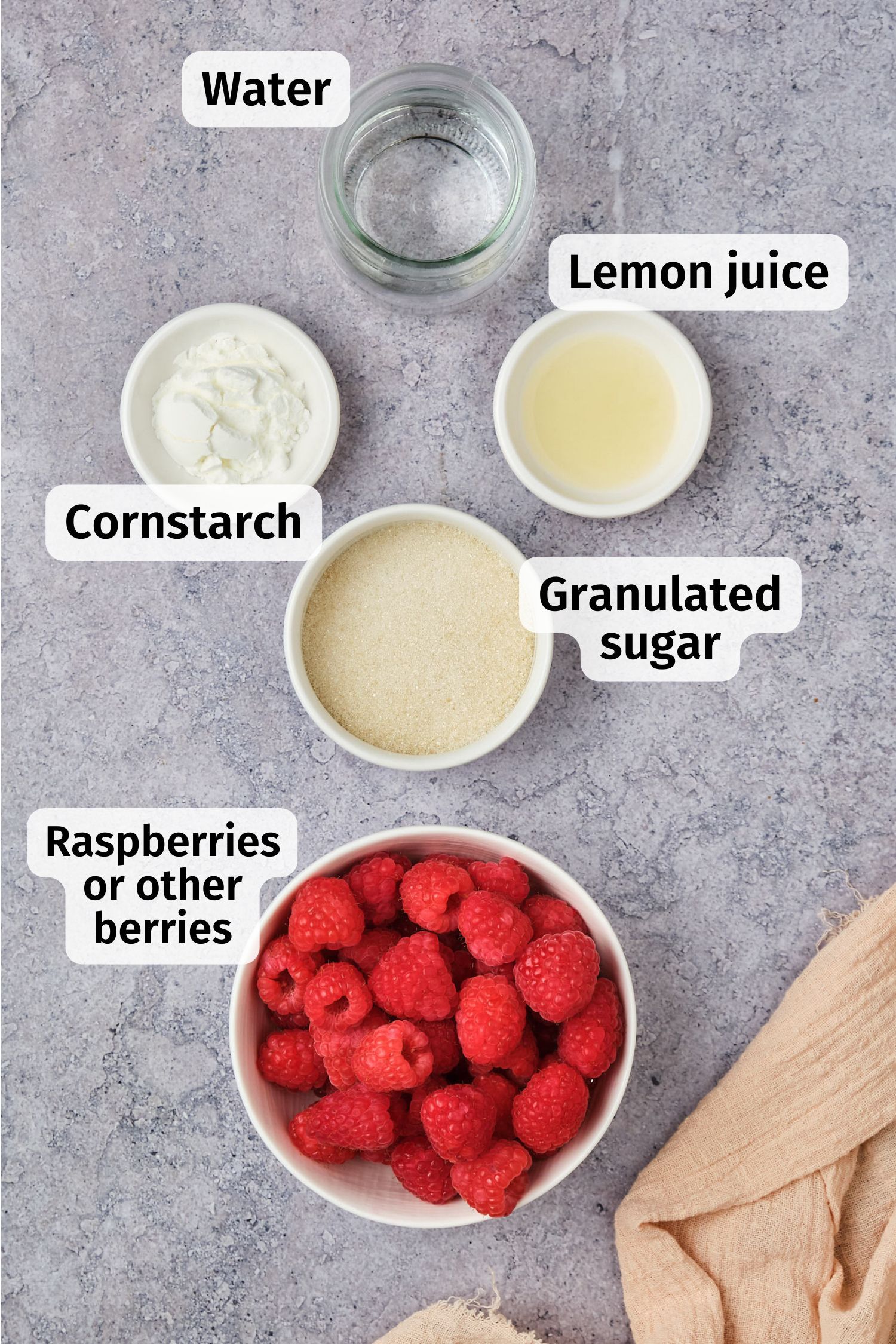 berries: I have made this recipe with blueberries and raspberries, but blackberries and cut strawberries would work, too. If you want to use frozen berries, you can reduce or eliminate the water, and you may not need to use cornstarch, since you'll have a thicker sauce.