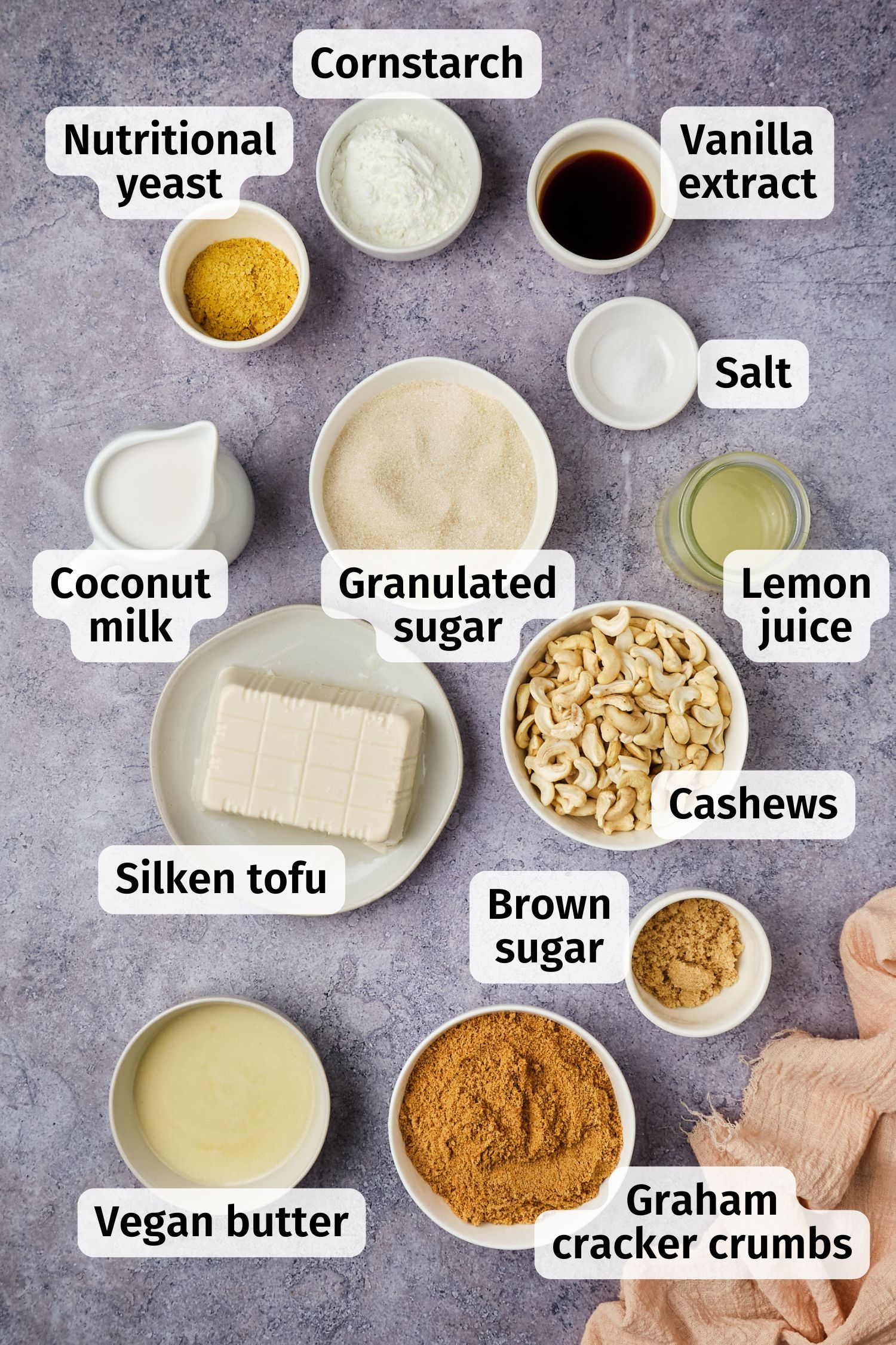nutritional yeast: This adds a bit of cheesy taste to the cheesecake without overpowering it.