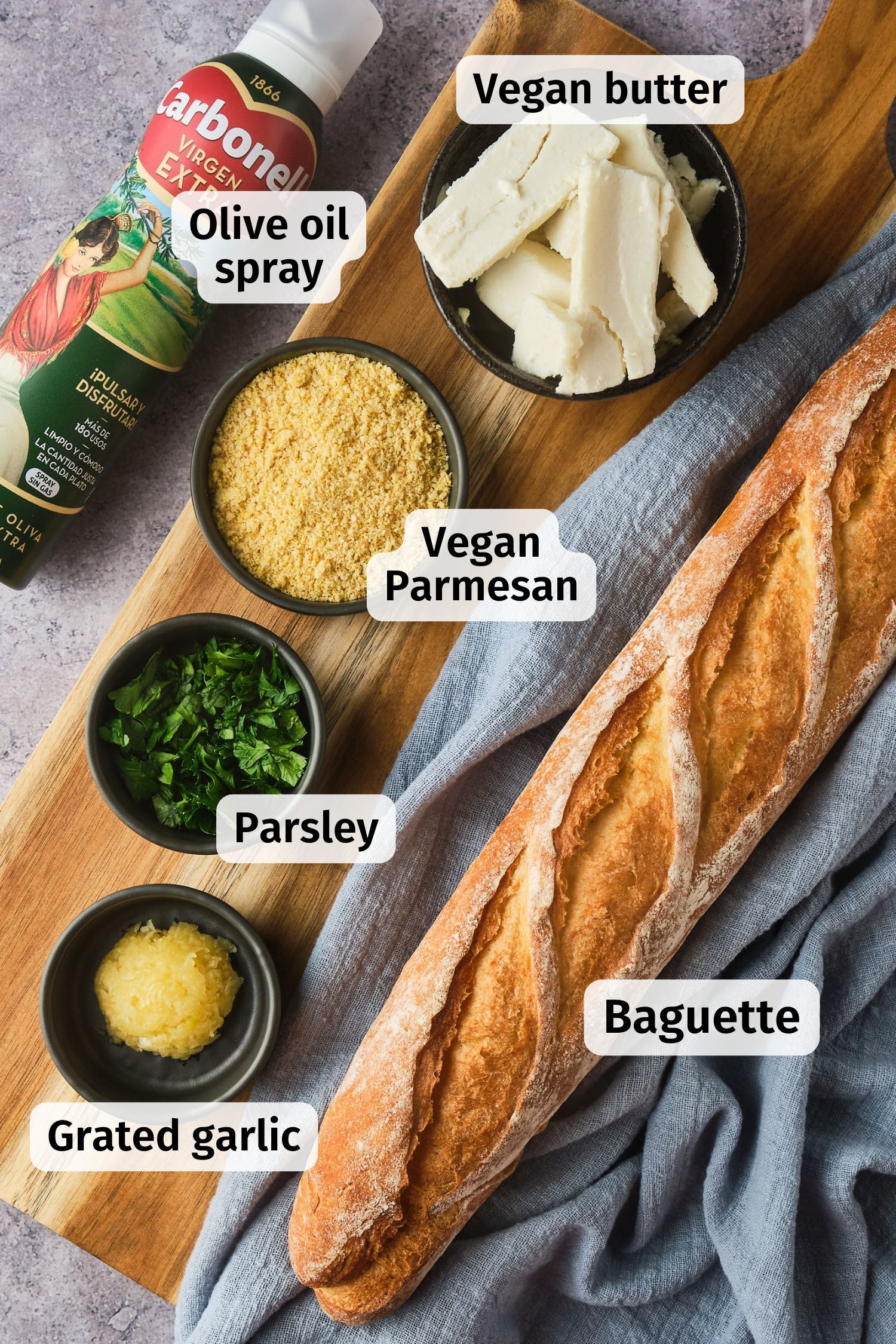 olive oil spray: This gets sprayed onto the outside of the loaf and comes together with the vegan Parmesan to create a crunchy and flavorful crust. If you don't have olive oil spray, you can lightly brush olive oil on top of the bread.