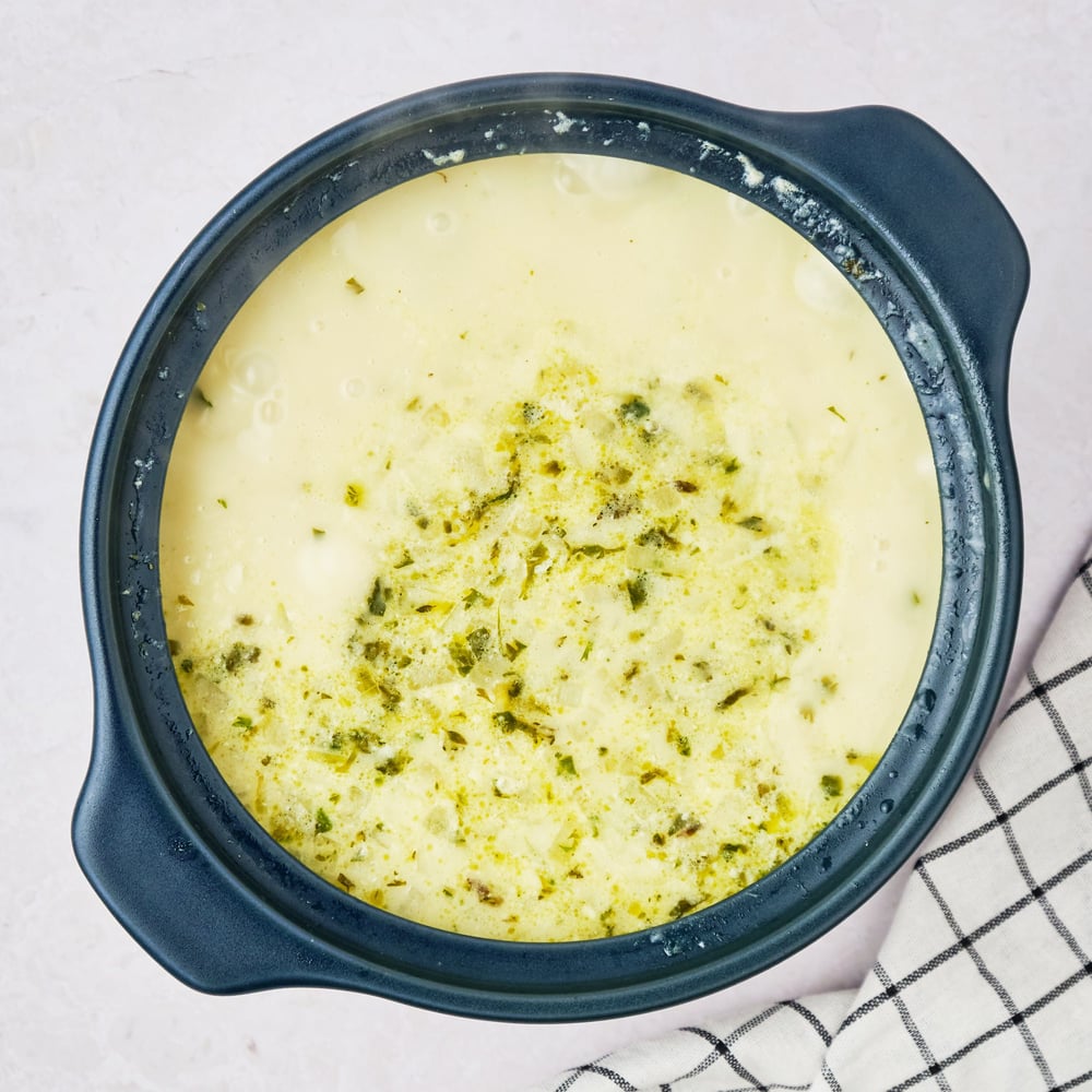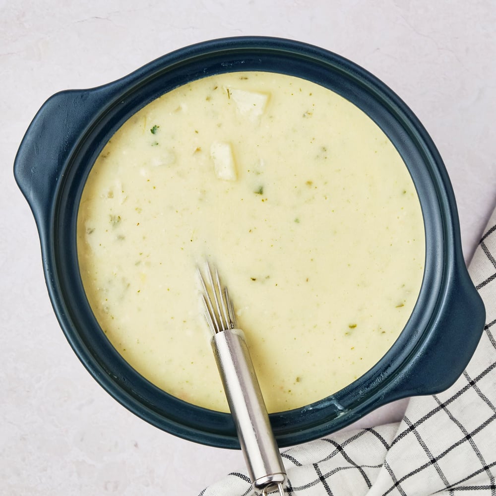 Carefully transfer about half of the soup to a blender jar. Remove the center cap from the blender lid, then cover the blender jar with the lid and cover the opening in the lid with a clean kitchen towel or paper towel. Blend the soup until it's smooth.*
