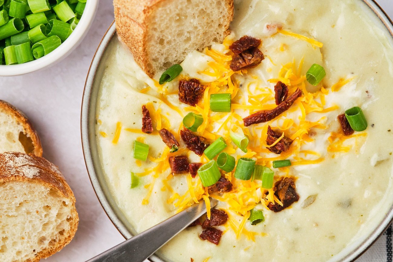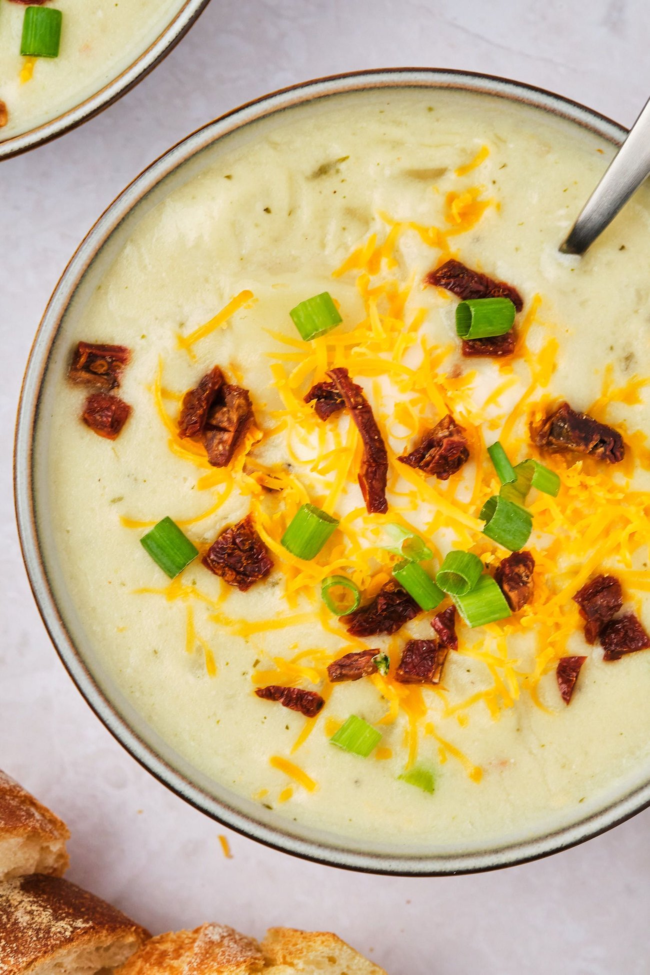 sun-dried tomatoes: These add a burst of flavor and color to the soup and make a great replacement for bacon without using fake meat. You could also use vegan bacon bits if you prefer, just choose one that will hold up to the heat and moisture of the soup.