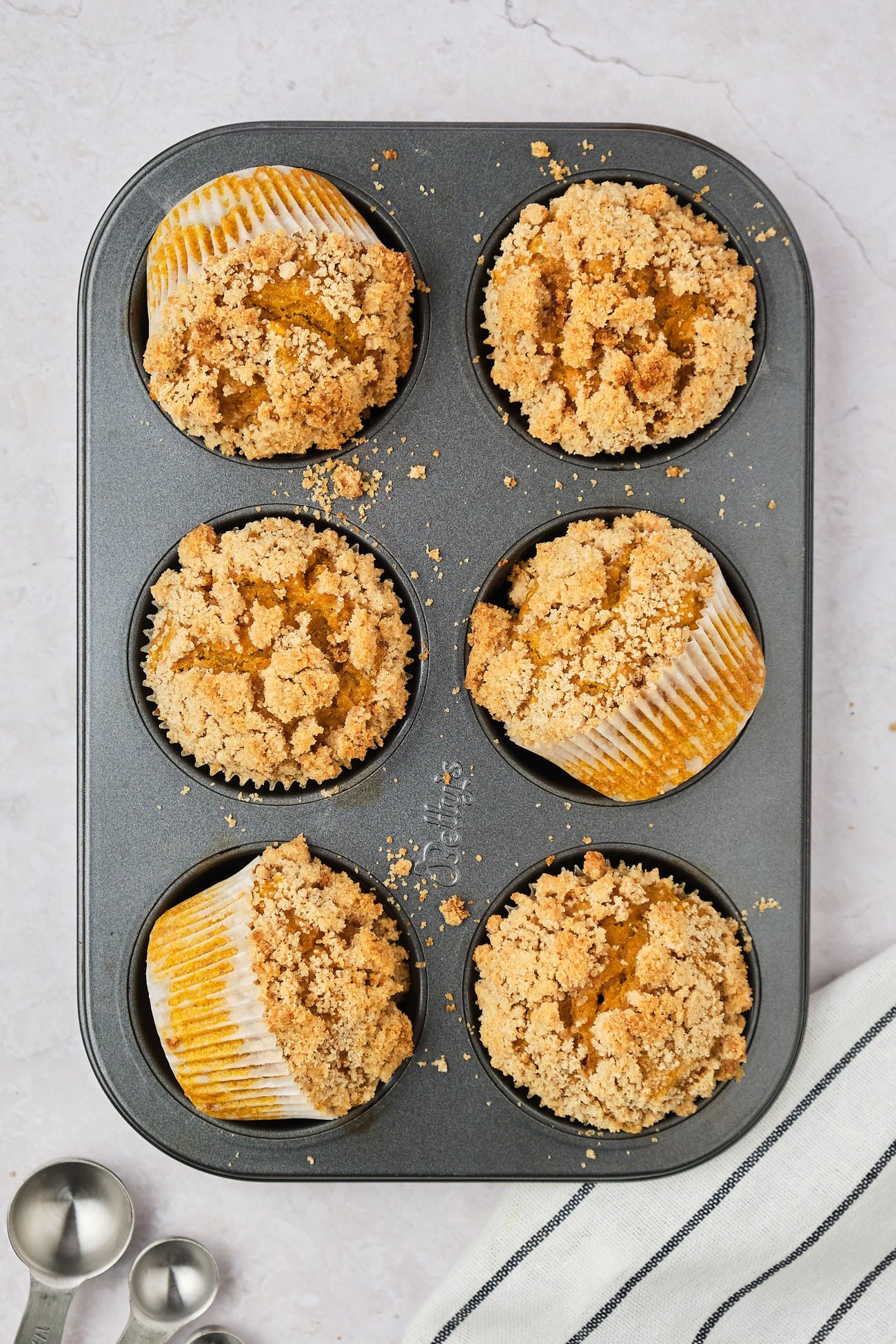 For the streusel (optional): Sprinkle the streusel topping over each muffin and gently press it into the top.