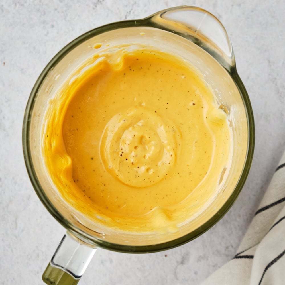 This recipe is super easy to make in a blender, and you won't have to worry about what's in it. It's made with raw cashews, carrots, butternut squash, nutritional yeast, and a savory blend of spices. Although it's packed with flavor, it doesn't have any of the unhealthy or overly processed stuff.