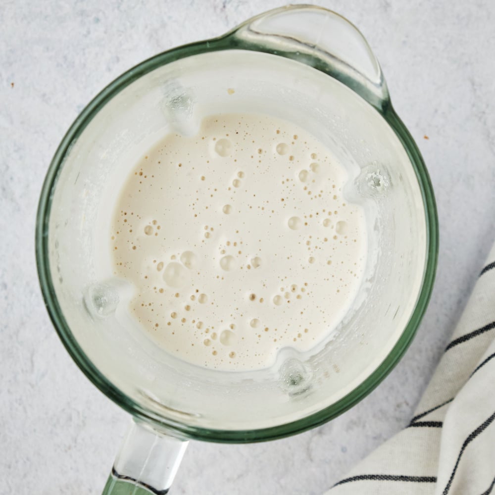 While the vegetables are cooking, blend cashews and water in a blender for 2-4 minutes, until smooth.